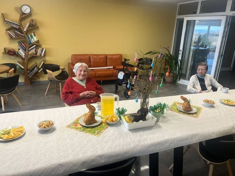 K Velikonocům samozřejmě patří také dobré jídlo. Na stolech nechyběly velikonoční dobroty a oblíbený vaječný likér, který ke svátečnímu posezení neodmyslitelně patří. Klienti si mohli v klidu vychutnat příjemné chvíle u kávy, popovídat si a společně si připomenout tradice, které mnozí z nich znají už od dětství.
