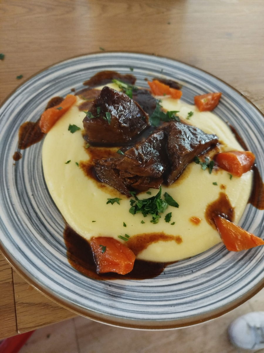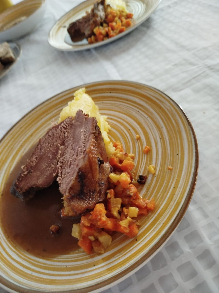 - varianta: Vepřová panenka s pečenou řepou, silnou omáčkou a zámeckými brambory s bylinkami