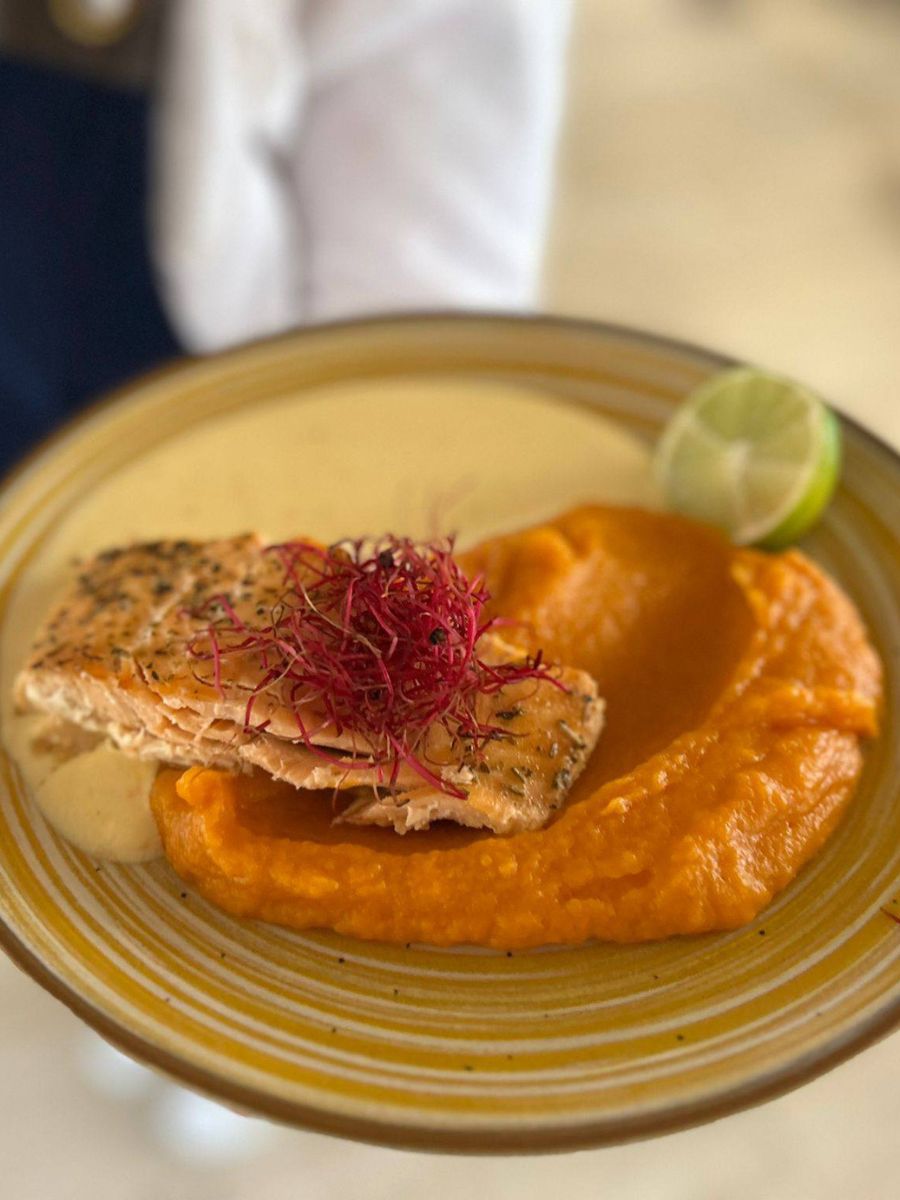 - varianta: Grilovaný losos s citrusovou omáčkou a bramboro-batátovým pyré