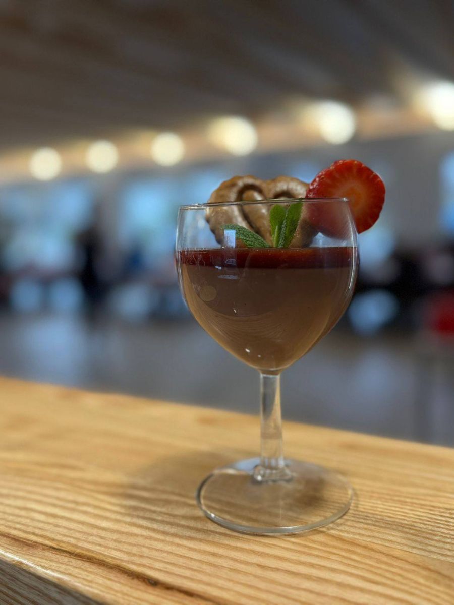 - Dezert: Čokoládová panna cotta s jahodami